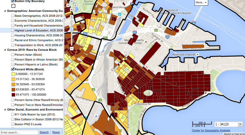 My photo, taken at W. Broadway and C shows the ways in which South Boston is shifting as a neighborhood. We see a sign for Al’s Liquors directly facing the sign for Foodie Market. In an almost spatial rivalry, the two exist and share this intersection in an eerie battle between present and perhaps, past. My map, on the other hand, was my attempt to understand the ways in which actual rent was changing. One of the biggest markers of gentrification is the change in property value where rent rises and poorer residents are pushed out; I wanted to see what South Boston’s rent looked like when mapped out. I was familiar with the housing developments on the corner of West Broadway and B Street, but I was not aware of the enormous amount of construction and corporate development work also going on in the neighborhood. I thought to map the Median Gross Rents, in an effort to demonstrate the ways in which South Boston is becoming less of a highly low-income neighborhood and trying to attract young, wealthier, professionals. Although the newly built, and developing condominiums are not reflected in this map, I think this data tells us a lot about where Southie housing has been and where it will go. I suspect that the new apartments being built across the street from the West Broadway Housing Development- once completed- will highly alter this data.
