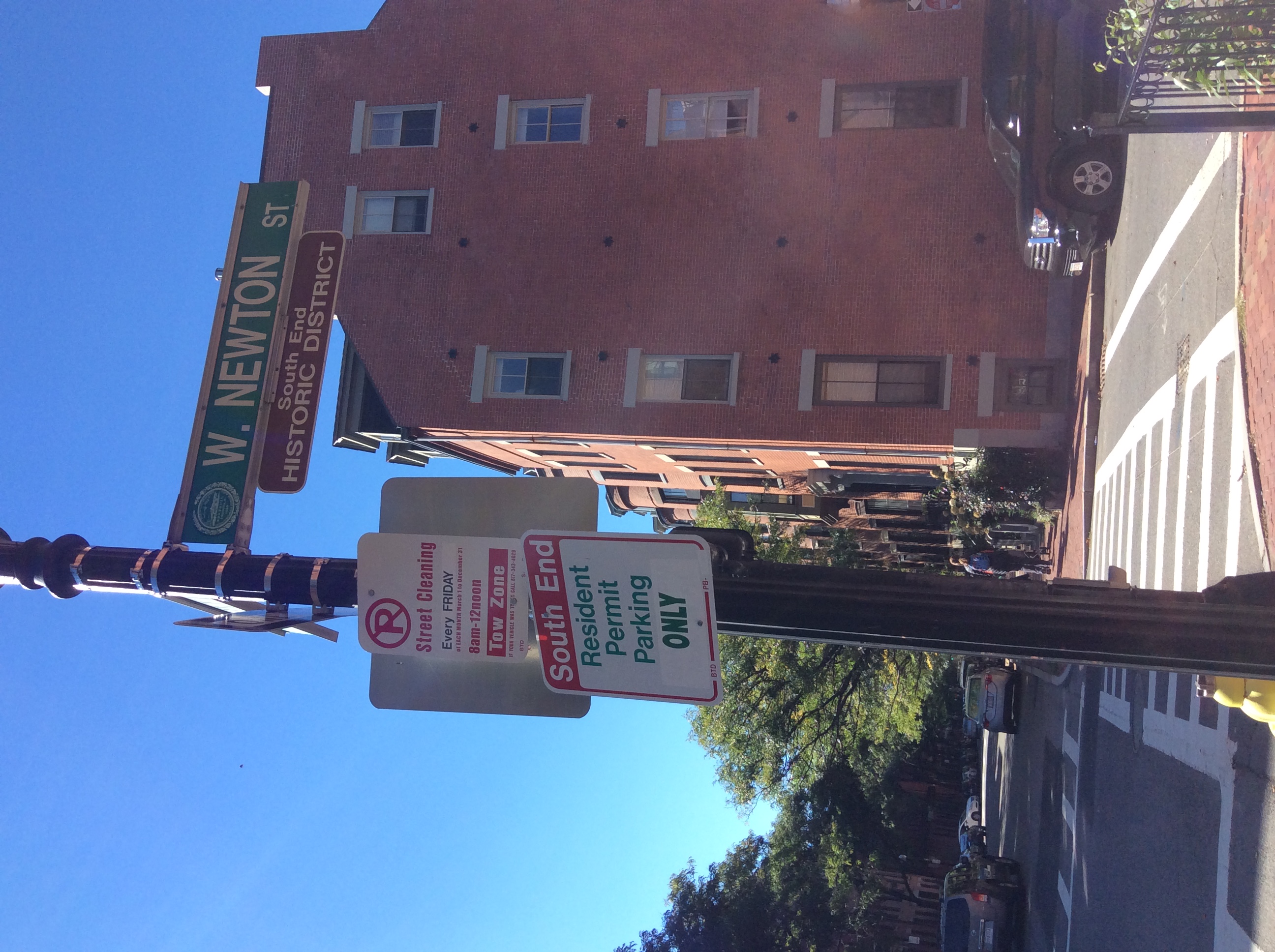 This picture is taken Boston is taken on the intersection of W. Newton St and Shawmut Ave. The South End not only home to thousands of local residents but also a tourist destination for thousands. In order to distinguish between these two populations, looking at cars parked in South End Resident Parking Only regions can lend to a more accurate and pointed view. Following this mantra of looking at resident parking areas, the cars parked in these areas and what these cars look like (the bumper stickers attached to them) are thus representative of the people who live there. Ergo, an analysis of bumper stickers in South End Resident Parking Only area can illustrate details about the types of people who live in South End and even sections within the South End.