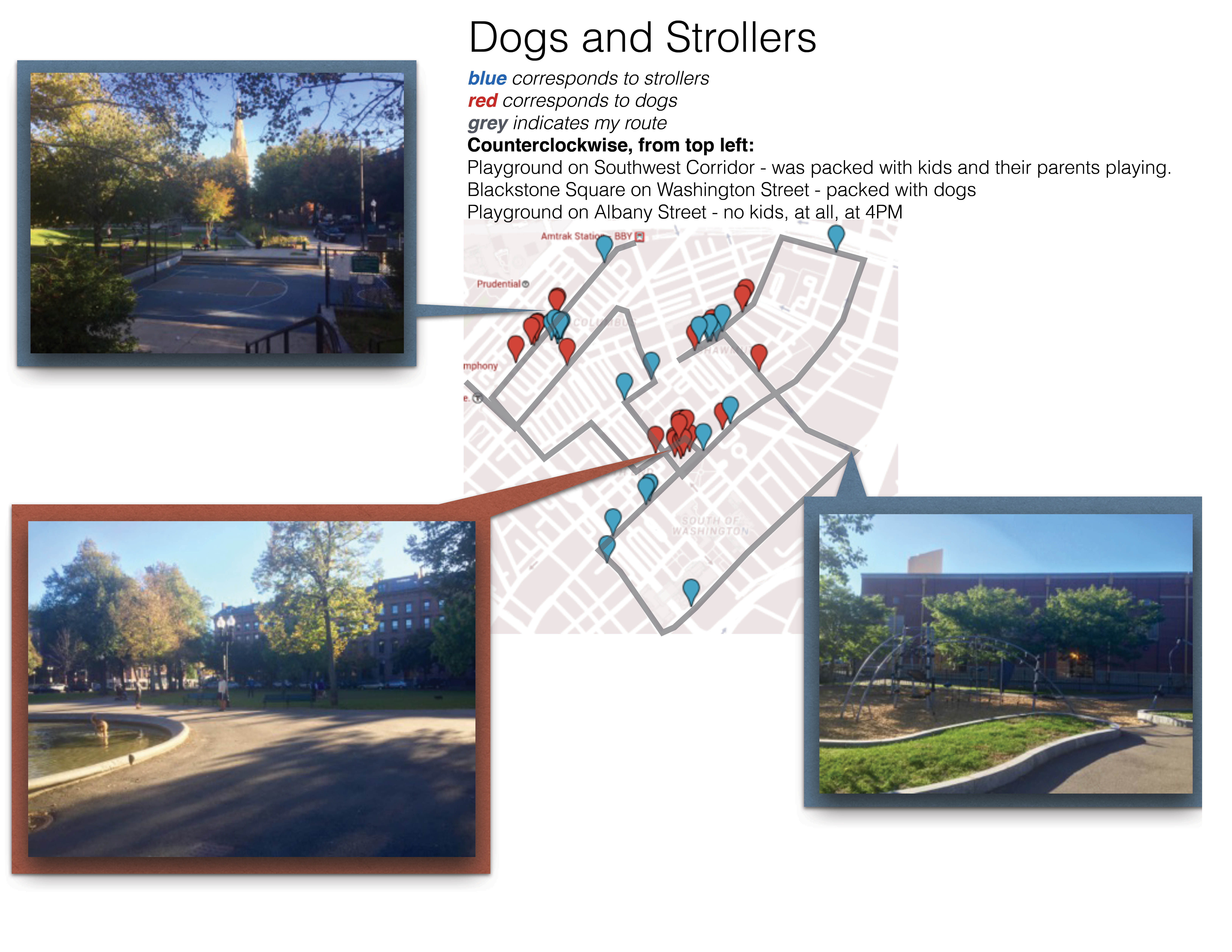 I found the photograph I chose best encapsulated the indicators I chose--dogs, strollers, and coffee. Taken at Caffé Nero on Tremont Street by Union Park, this photograph is all that this parcel of the neighborhood is about: young professionals, with their pricey coffee, rather distanced from the neighborhood in which they dwell. In retrospect, I wish I had captured a panorama of the coffee shop, because beyond these professional coffee-shop dwellers, there were well-to-do moms with their kids in strollers everywhere.