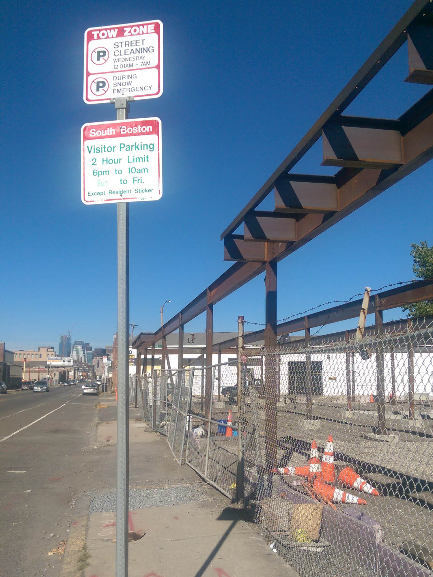 My picture is of a Visitor's Parking sign on Dorchester Avenue. It captures the segregation between the residents and the visitors in South Boston as well as the lack of tourism in this area (nobody is parked in the visitor's parking spots). Finally, the industrial shop on the right of the sign captures the working-class jobs that are based in South Boston.