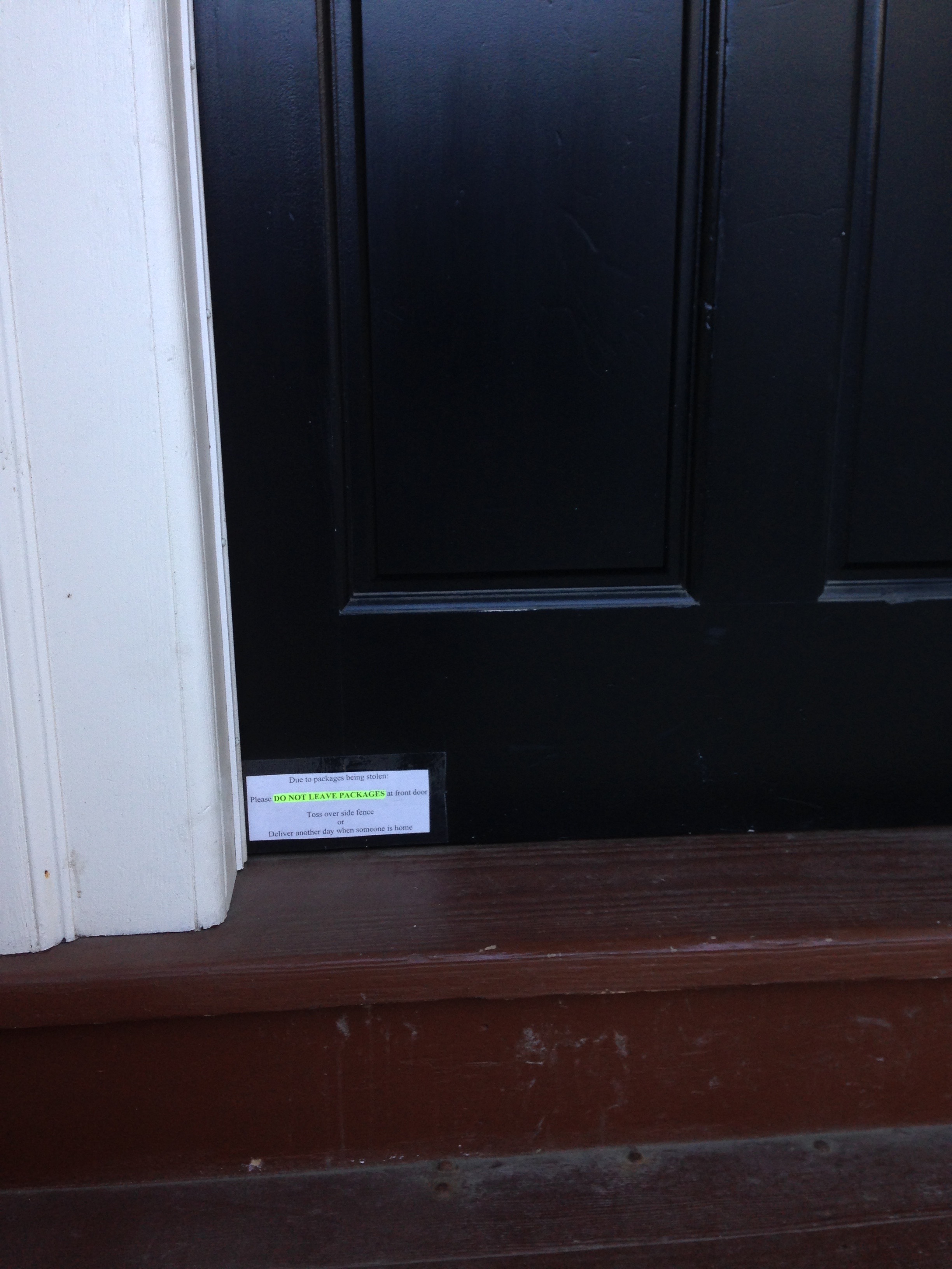 This photo was taken at 341 High St. in Charlestown, Boston and the Map is from WorldMap. For the map, I chose to focus on the measure of Income in Boston. This shows something unique about Charlestown in that it shows that while there is a large amount of people who are in the highest categories of income, there are also a large population on the other end of the spectrum. This can be seen as a representation of the gentrification process that is going on. The picture that I took also represents the unique situation that Charlestown is in because the neighborhood is becoming more and more gentrified. This picture is of a door on a strikingly fancy and modern looking row house, with a note that says, "Due to packages being stolen: Please DO NOT LEAVE PACKAGES at the front door,”. This shows that while Charlestown is being gentrified, it is not fully there and still has aspects of its rough, working class past.